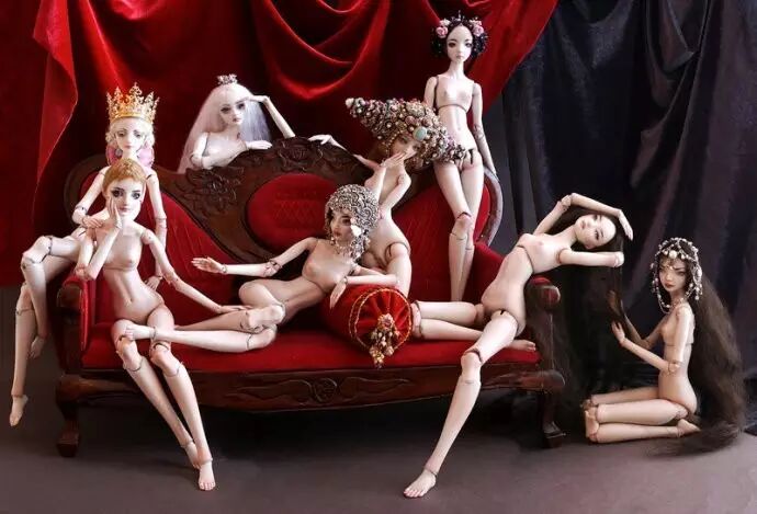 她们皮肤光滑宛若瓷器,她们肌体白皙一尘不染,她们娇小脆弱风不可吹。这些以假乱真的仿女性肌肤的材质,是Enchanted Doll对传统女性美的致敬。